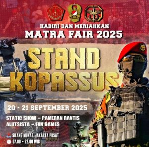Koran Jurnal, Jakarta – TNI Angkatan Darat siap memeriahkan kawasan Pintu Timur Silang Monas, Jakarta Pusat, dengan menggelar TNI AD Fair 2025, yang akan dihelat pada 20–21 September 2025 mulai pukul 08.00 hingga 21.00 WIB. Kegiatan ini menjadi salah satu rangkaian HUT ke-80 TNI yang diharapkan dapat semakin mendekatkan TNI, khususnya Angkatan Darat dengan rakyat.