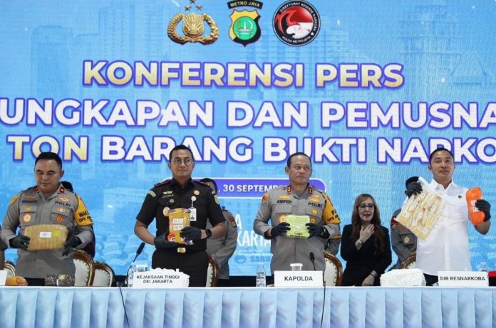 Koran Jurnal, Jakarta – Polda Metro Jaya memusnahkan barang bukti narkoba berbagi jenis sebanyak 1,14 ton. Pemusnahan dipimpin langsung oleh Kapolda Metro Irjen Asep Edi Suheri di Mapolda Metro Jaya, Selasa (30/9/2025).