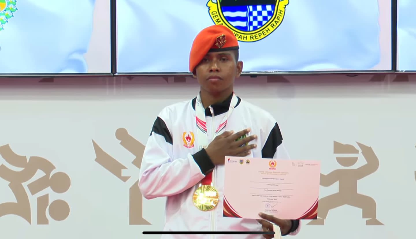 Koran Jurnal, Kudus – Atlet Korps Pasukan Gerak Cepat (Korpasgat) TNI Angkatan Udara, Pratu Fransiskus Karubun dari Denma Mako Korpasgat yang mewakili Provinsi Jawa Barat, berhasil meraih medali emas pada ajang Pekan Olahraga Nasional (PON) Beladiri Kudus 2025 cabang Ju-Jitsu kelas 56 kg kategori putra fighting system, Minggu (26/10/2025) lalu.
