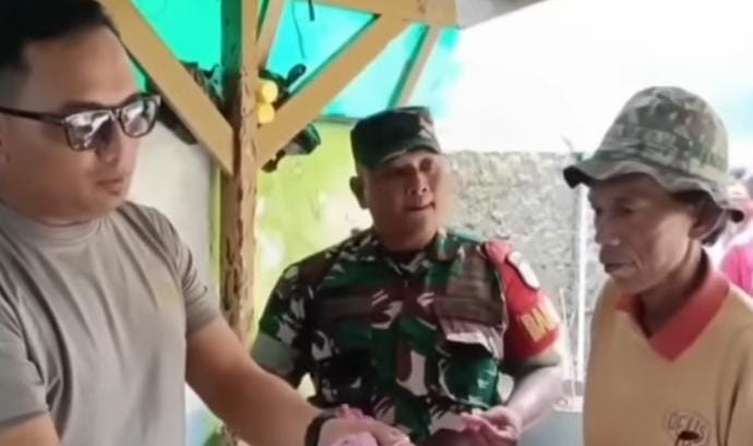 Tampak dalam video itu memperlihatkan dua oknum aparat keamanan berseragam TNI dan Polri diduga menginterogasi kakek penjual es tersebut.