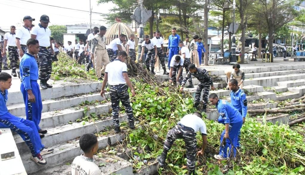 Koran Jurnal, Kupang – Komando Daerah TNI Angkatan Laut Kodaeral VII menyelenggarakan kegiatan Bersih Pantai Bersama dalam rangka mendukung Program Indonesia ASRI yang dilaksanakan di kawasan pantai depan Hotel Aston Kupang. Kegiatan ini dipimpin langsung oleh Wakil Komandan Kodaeral VII Brigjen TNI (Mar) Nawawi, S.E., M.M., sebagai wujud komitmen nyata Kodaeral VII dalam menjaga kelestarian lingkungan pesisir serta meningkatkan kesadaran kolektif seluruh elemen masyarakat.