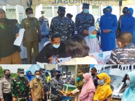 Peringati HUT ke-76, TNI AL Gelar Vaksinasi dan Bagikan Paket Sembako di Pasir Angin Cileungsi Kab. Bogor