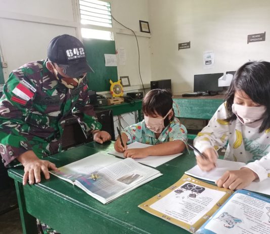 Satgas Pamtas Yonif 642/Kapuas Buka Perpustakaan Mini untuk Anak-anak