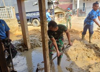 Kepedulian Personel Lanud Sutan Sjahrir, Bersihkan Lumpur Pascabanjir di Padang