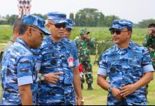 Koran Jurnal, Subang - Pangkoops Udara I Marsda TNI Mohammad Nurdin dampingi Pangkoopsudnas Marsdya TNI Ir. Tedi Rizalihadi S., M.M., dalam meninjau Latihan Pendahuluan...