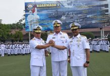 Koran Jurnal, Jakarta - Pangkoarmada I Laksamana Muda TNI Yudo Margono, S.E., M.M., pimpin Upacara Serah Terima Jabatan (Sertijab) Komandan Pangkalan Utama TNI Angkatan...