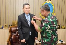 Komandan Pushidros TNI AL Sematkan Tanda Kehormatan Satyalancana Dwidya Sistha kepada Prof.DR. Henry Manik